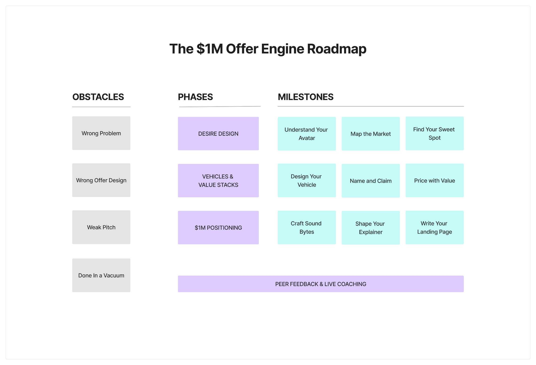 The $1M Offer Engine is a cohort-based course that kicks off February 20th, 2025.We're going to transform your expertise, product, or service into an irresistible offer – one that people not only want, but feel happy, even excited to spend money on.